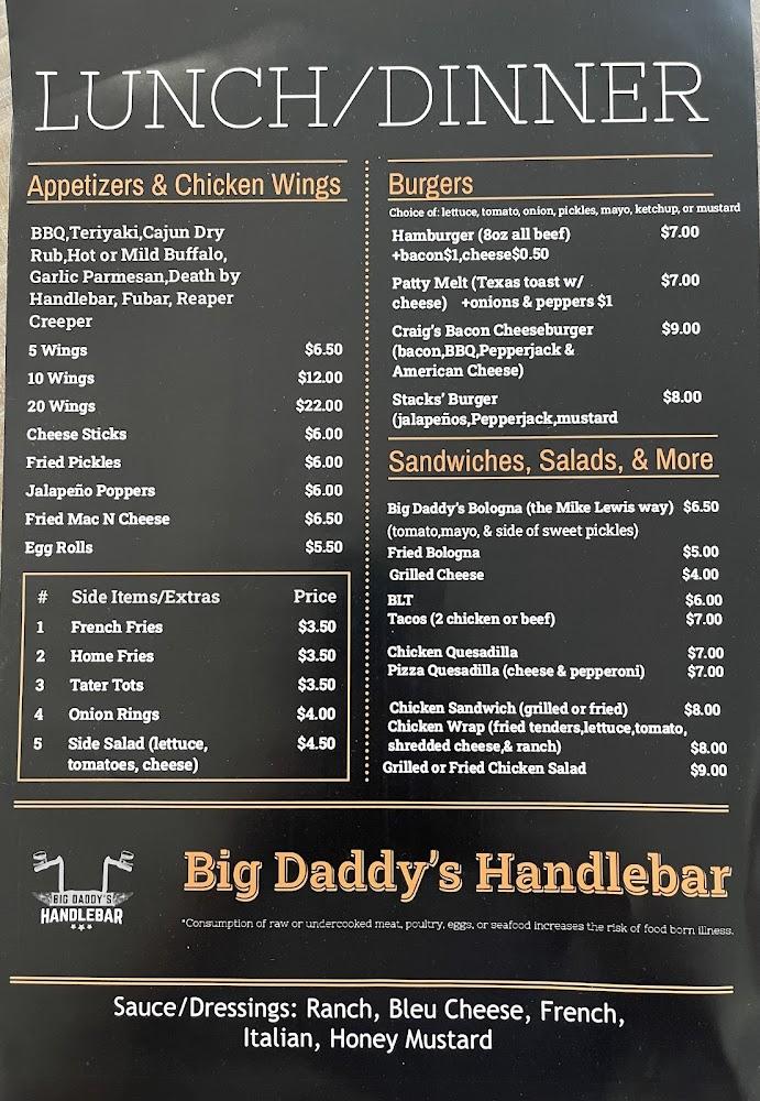 Welcome to Big Daddy's Handlebars, the ultimate biker bar in Murfreesboro, TN! Located at 2601 E Main St, we offer a relaxed and vibrant atmosphere perfect for bikers and locals alike. Enjoy our delicious wood-grilled cuisine, excellent cocktails, and an impressive selection of beers, all while participating in karaoke nights, live music, and more. Our spacious patio and wheelchair-accessible facilities make it easy for everyone to join the fun. Whether you're grabbing a quick bite or lingering for a late-night drink, our friendly service and lively ambiance ensure a memorable experience. Stop by and ride the wave of good times!